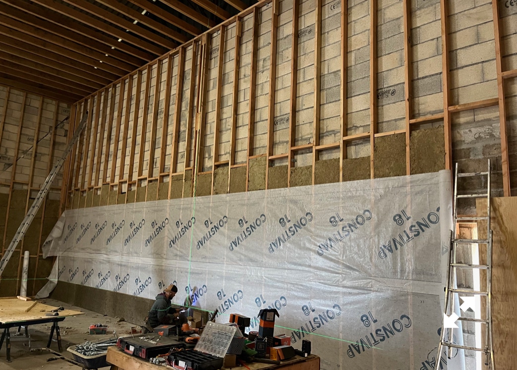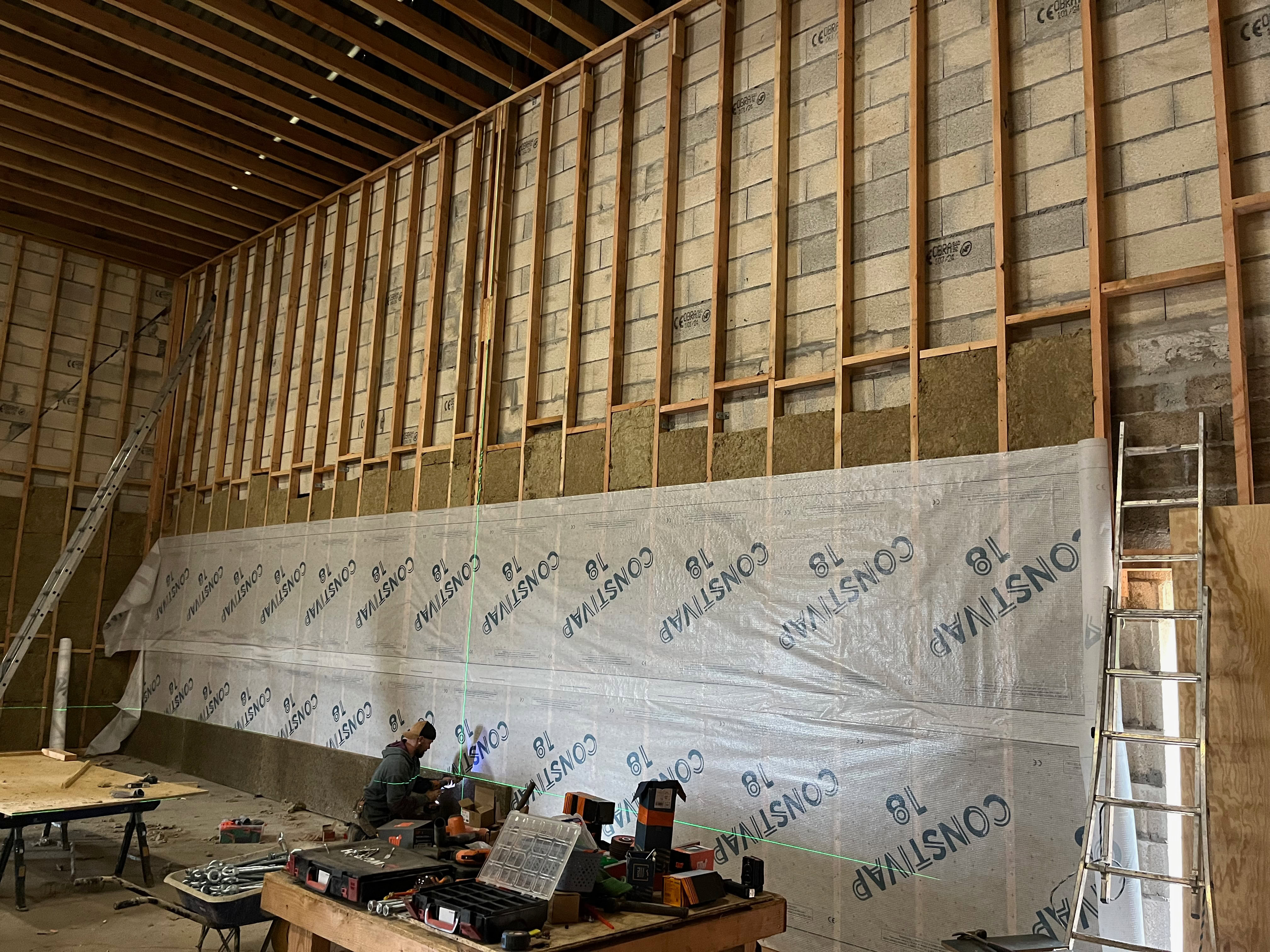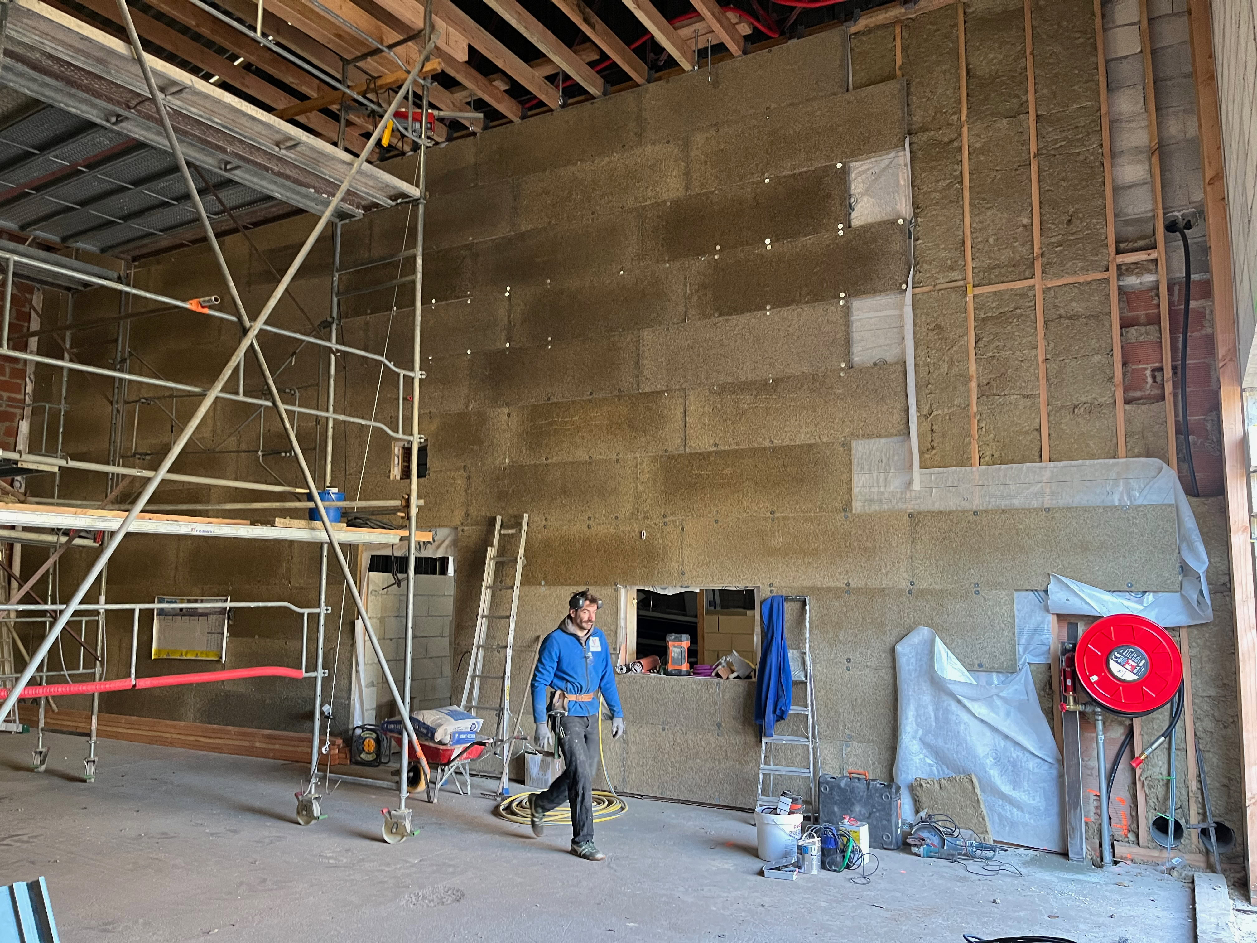 Avancement de l’isolation acoustique et du traitement acoustique sur les murs au nord et à l’est. 7 octobre 2024