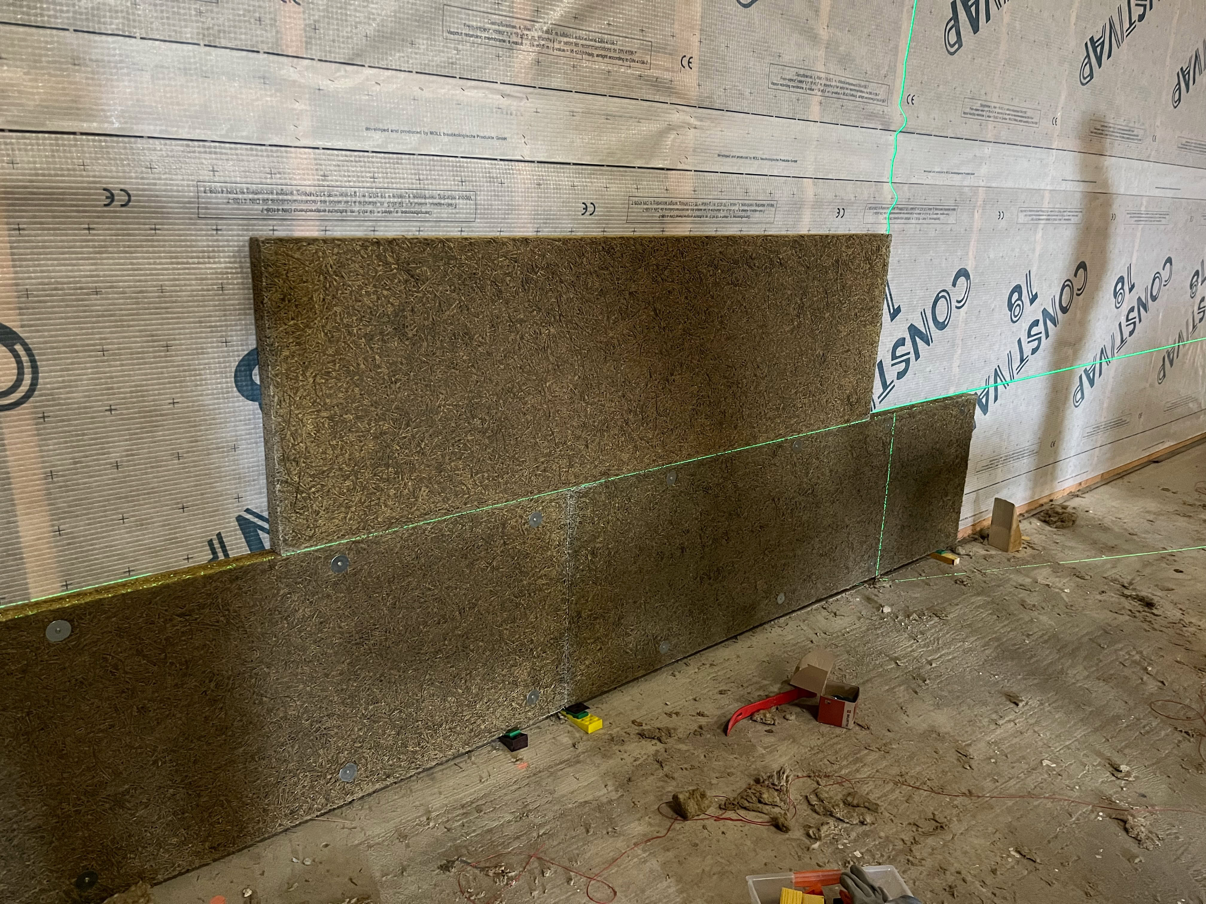 Avancement de ma pose des panneaux de Fibralth sur une haute au bye 2m40. Pose croisée sur le mur à l’est. 7 octobre 2024