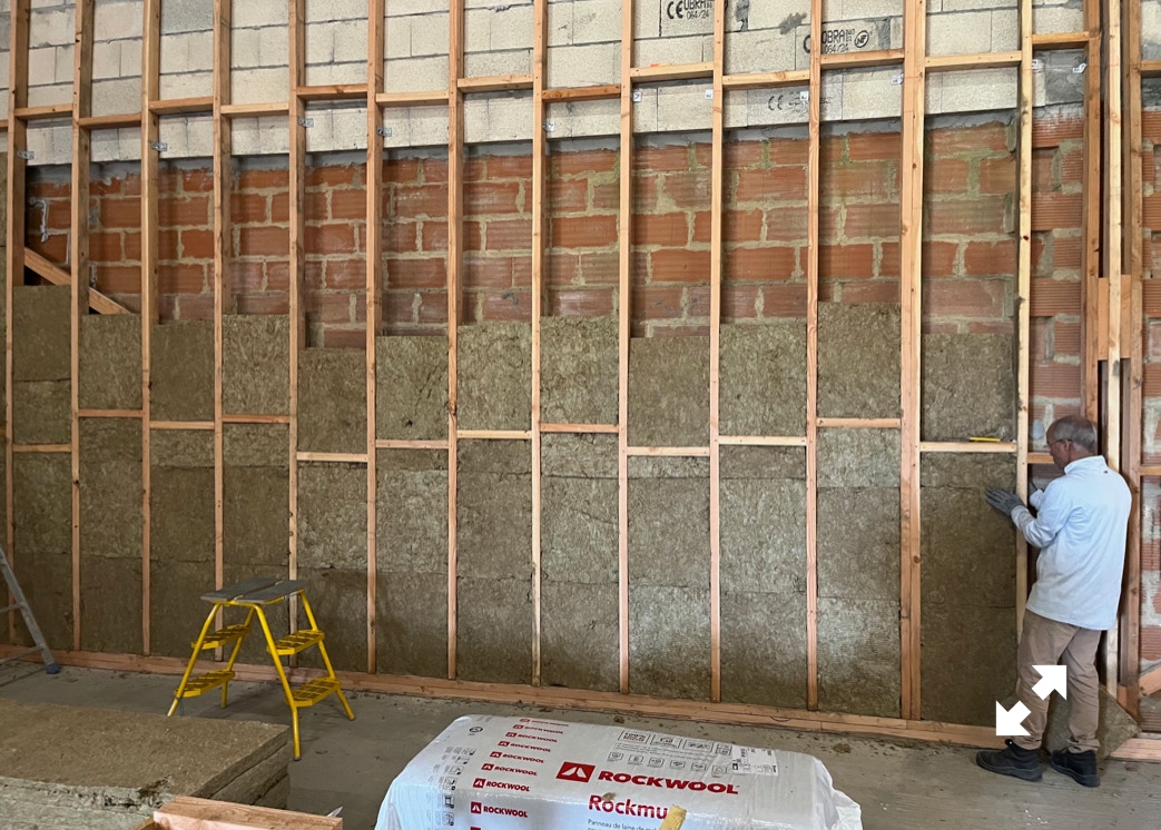 Isolation acoustique et thermique, pose de la laine de roche, épaisseur entre 10 et 20 cm. Vue de l’ensemble du panneau. 30 septembre 2024