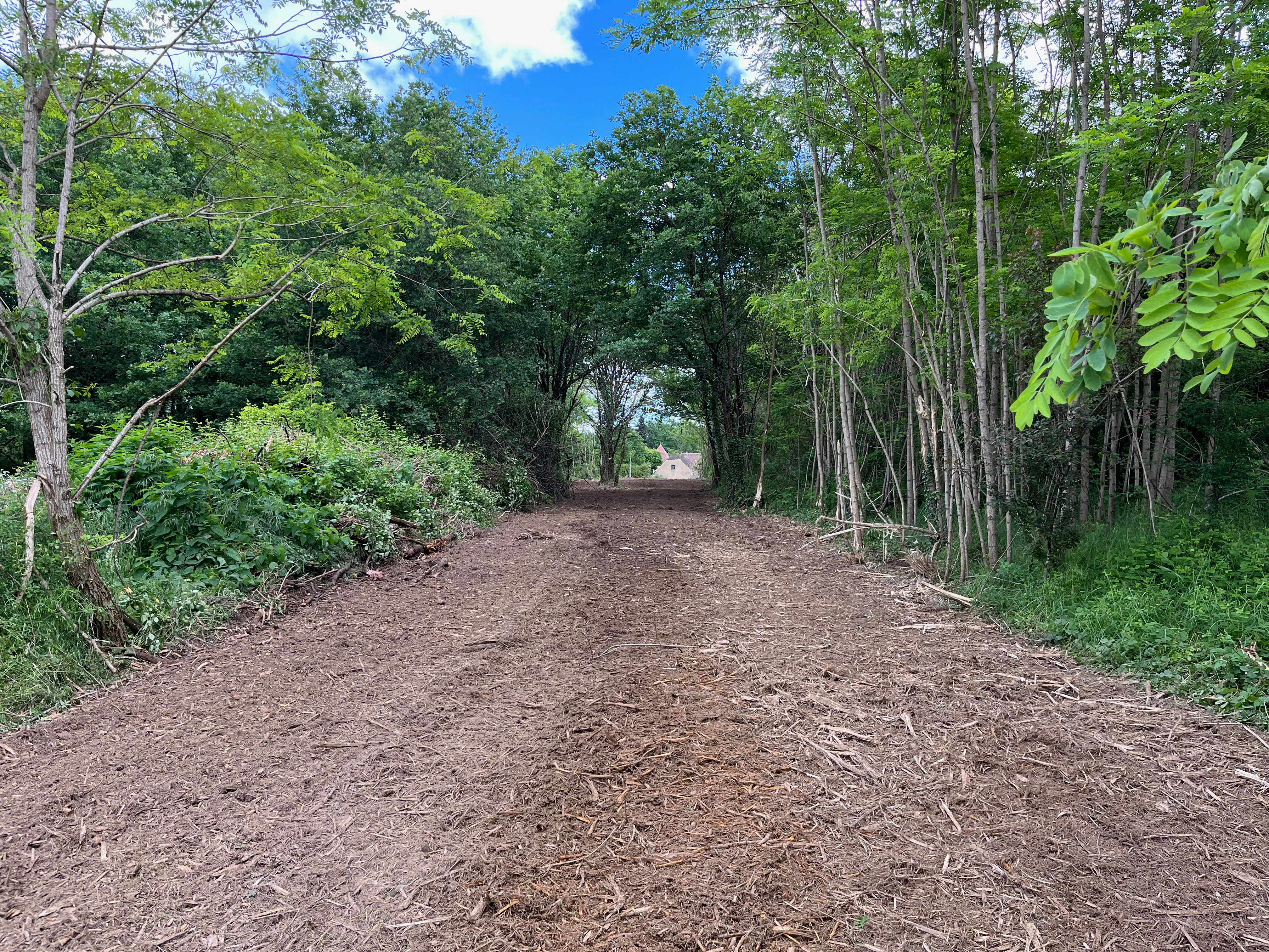 Nettoyage des bois et création d’un chemin de 300 mètres pour aller facilement d’un studio à l’autre.