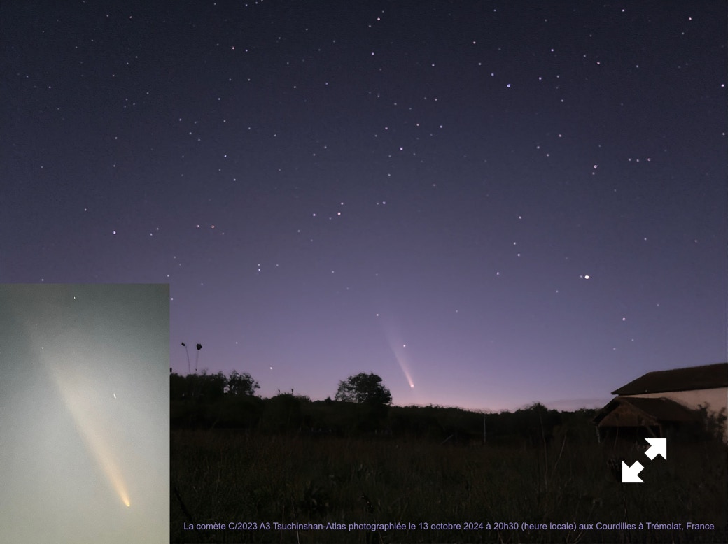 La comète C/2023 A3 Tsuchinshan-Atlas photographiée le 13 octobre 2024 à 20h30 aux Courdilles