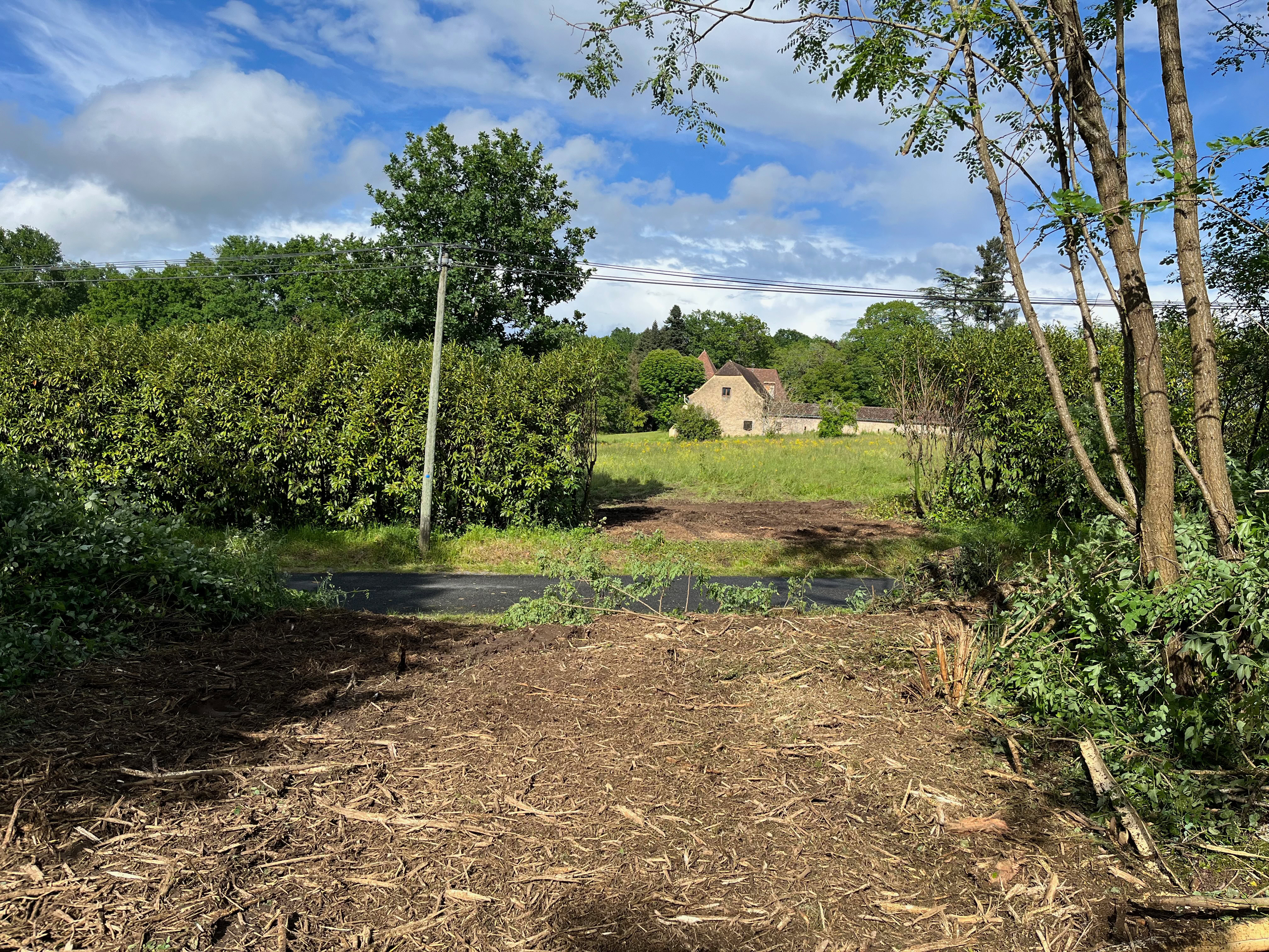 Débroussaillage et création du chemin vers l’est qui reliera les deux studio. Traversée de la route communale. 15 mai 2024