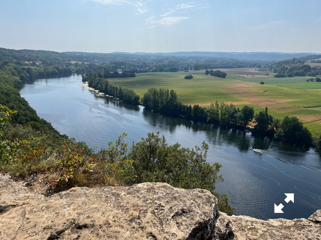 Le cingle de Trémolat, vue vers le sud-est, depuis le rocher de Roquebécude. En 2023