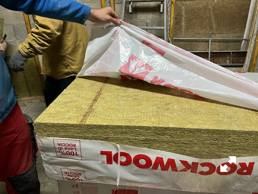 Laine de roche très compactée « Ecorock Duo, Rocksate Duo Plus, Frontrock Max Plus » pour les cloisons faciale et latérales de la Control Room. 11 février 2025