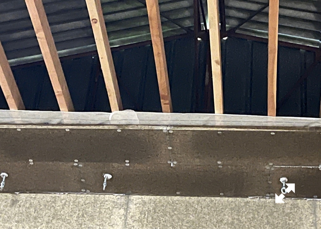 Avancement de la pose des plaques de Fibralith, mise en place progressive des crochets latéraux. 6 décembre 2024