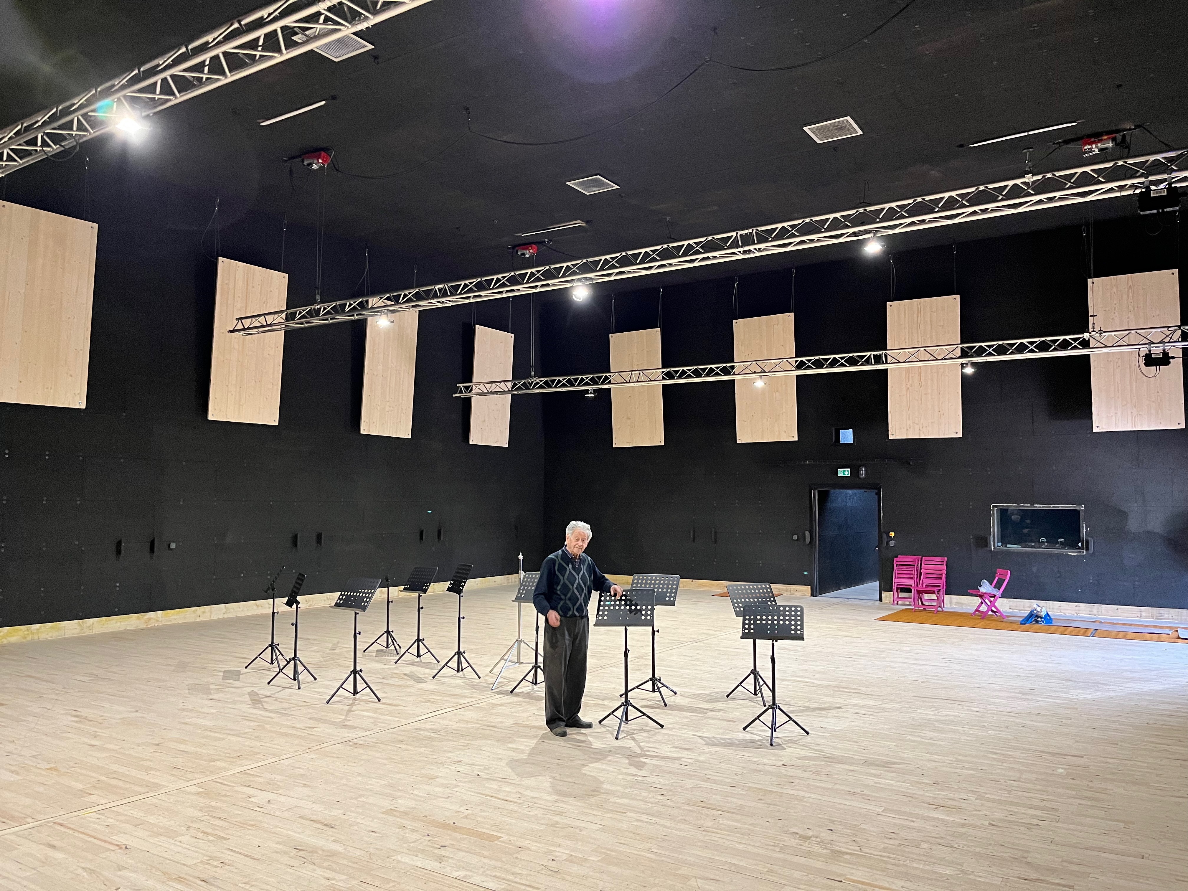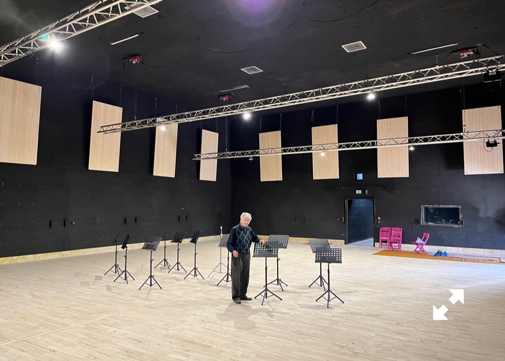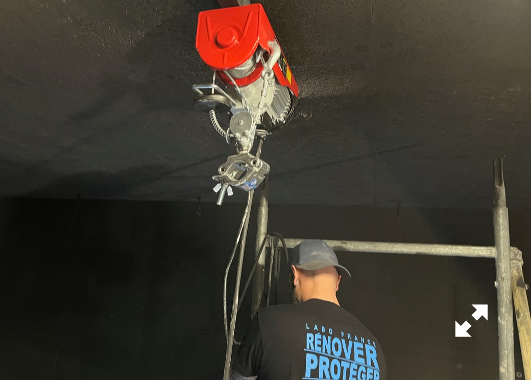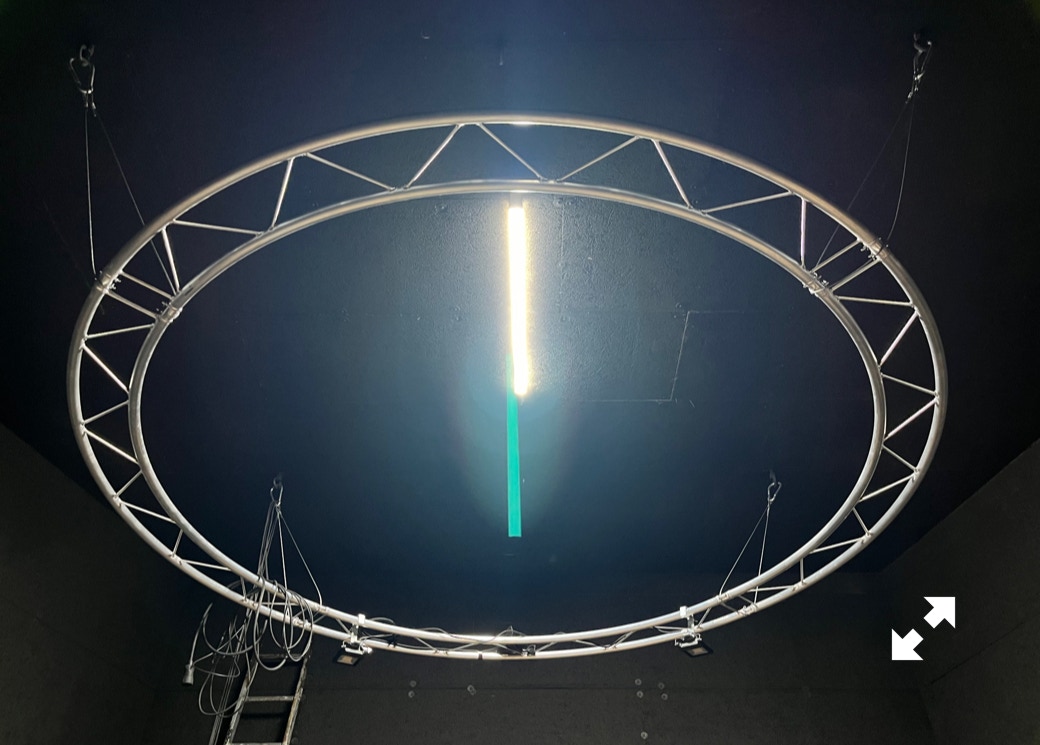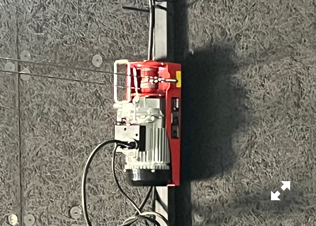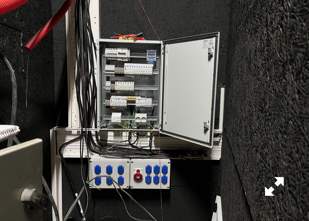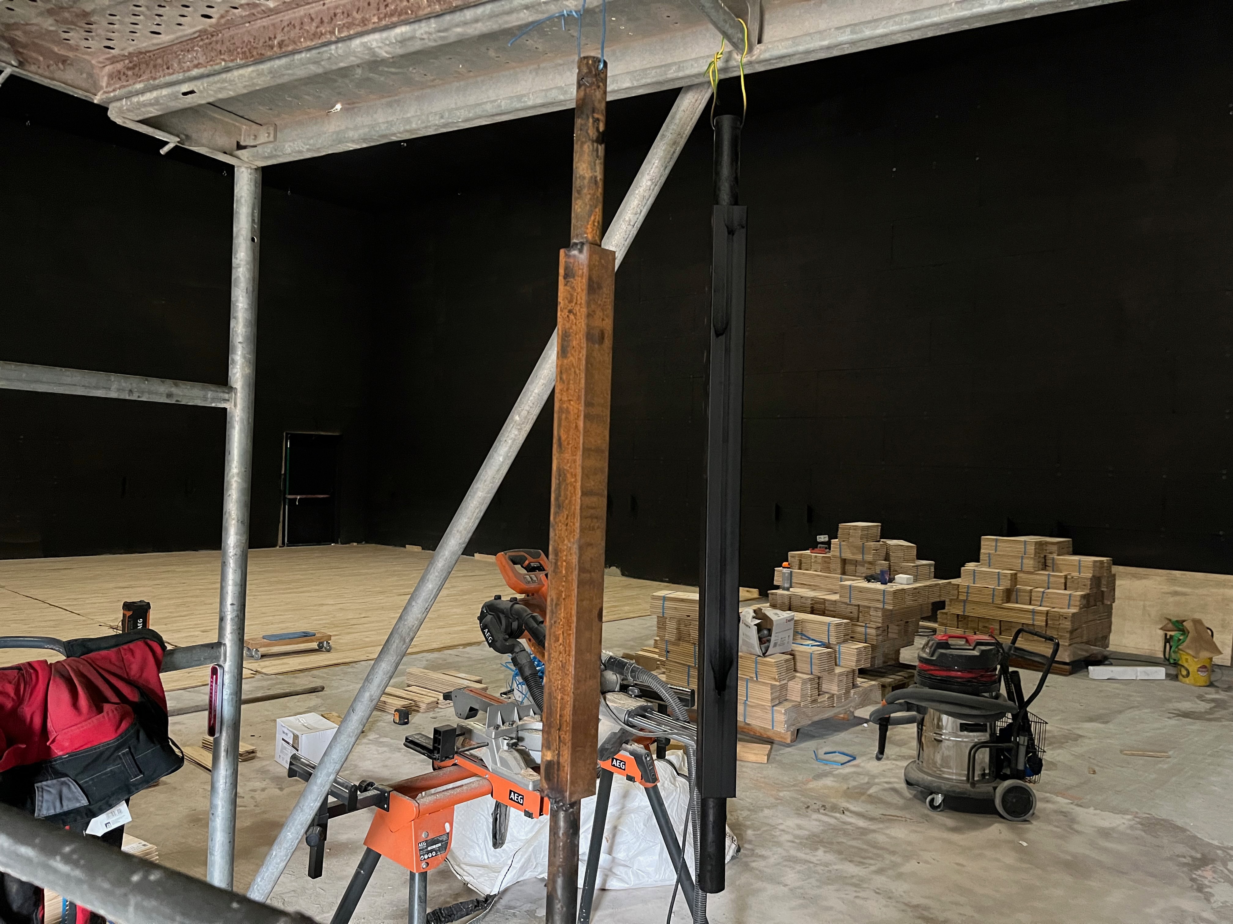 Le plateau sera équipé de 3 poutres métalliques en treillis triangulaire de 30 cm de côté et de 12 mètres de long, afin de suspendre le grill de projecteurs, les gradateurs de lumière et divers accessoires nécessaires aux installations du plateau pour l’enregistrement sonore ou le tournage d’images. Les longues poutres métalliques seront suspendues par des treuils électriques (charge maximale de 800 kg par treuil).