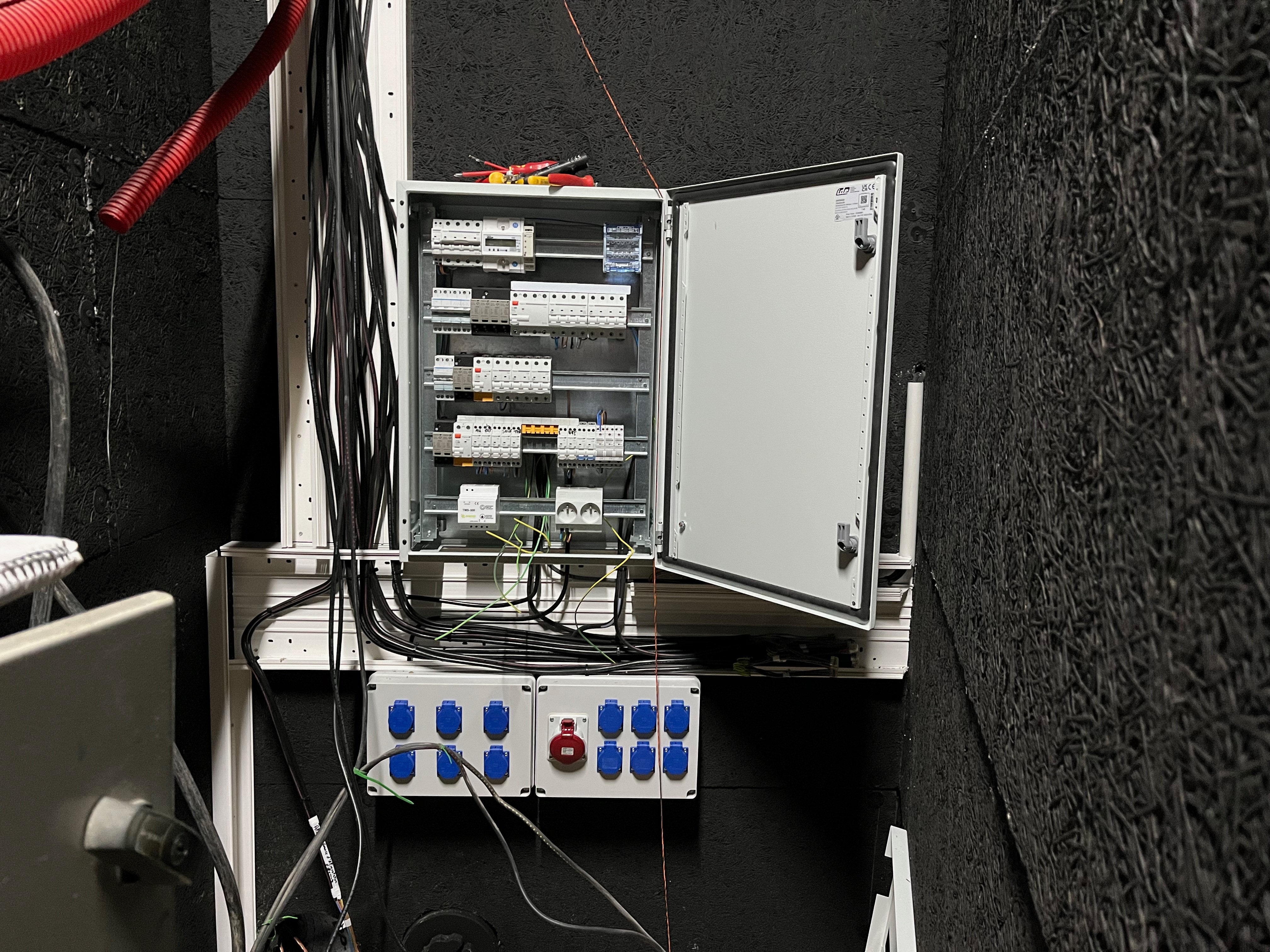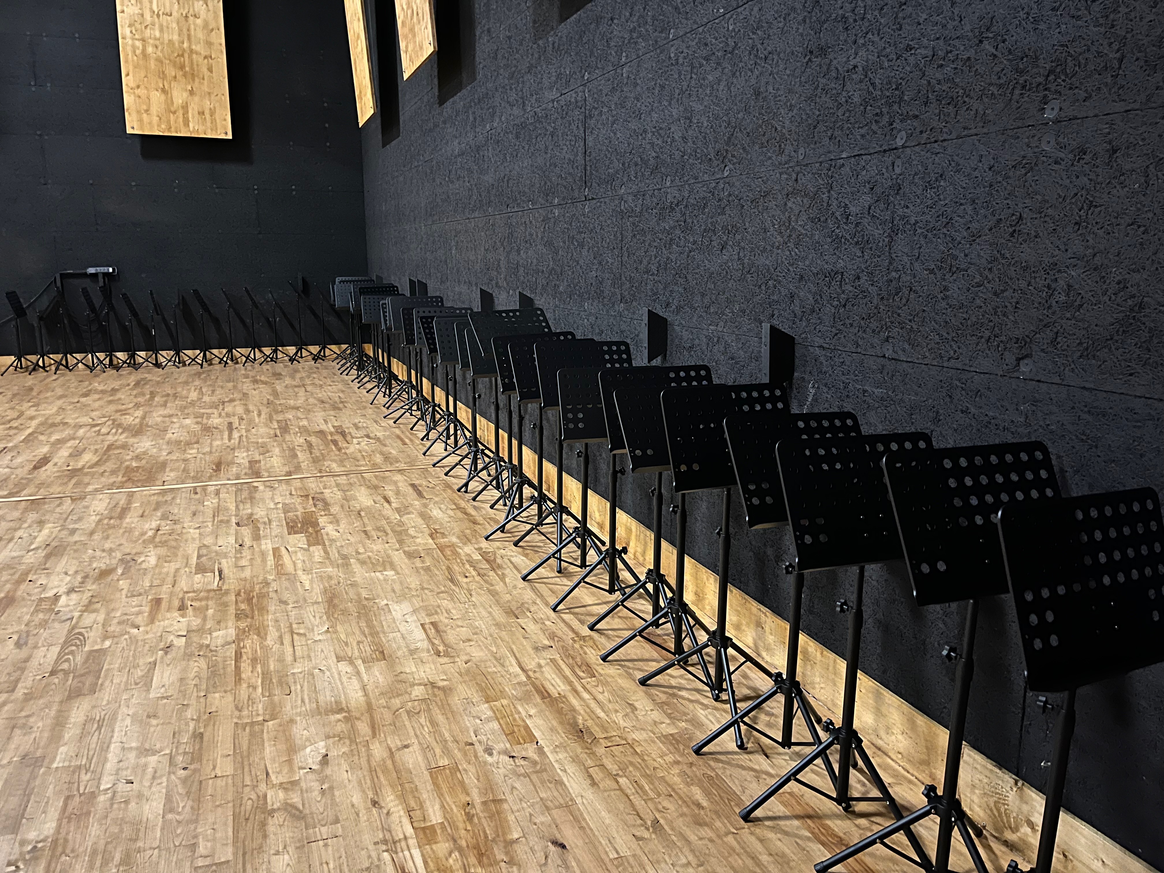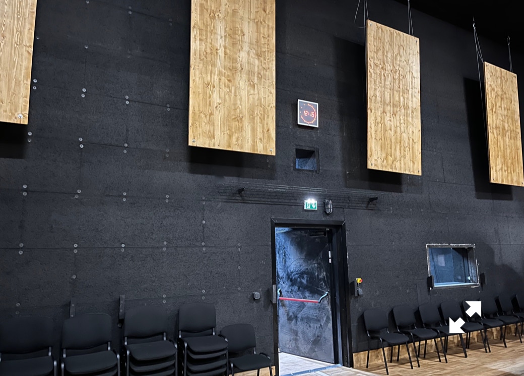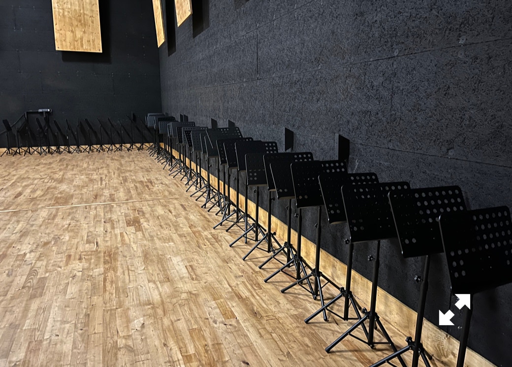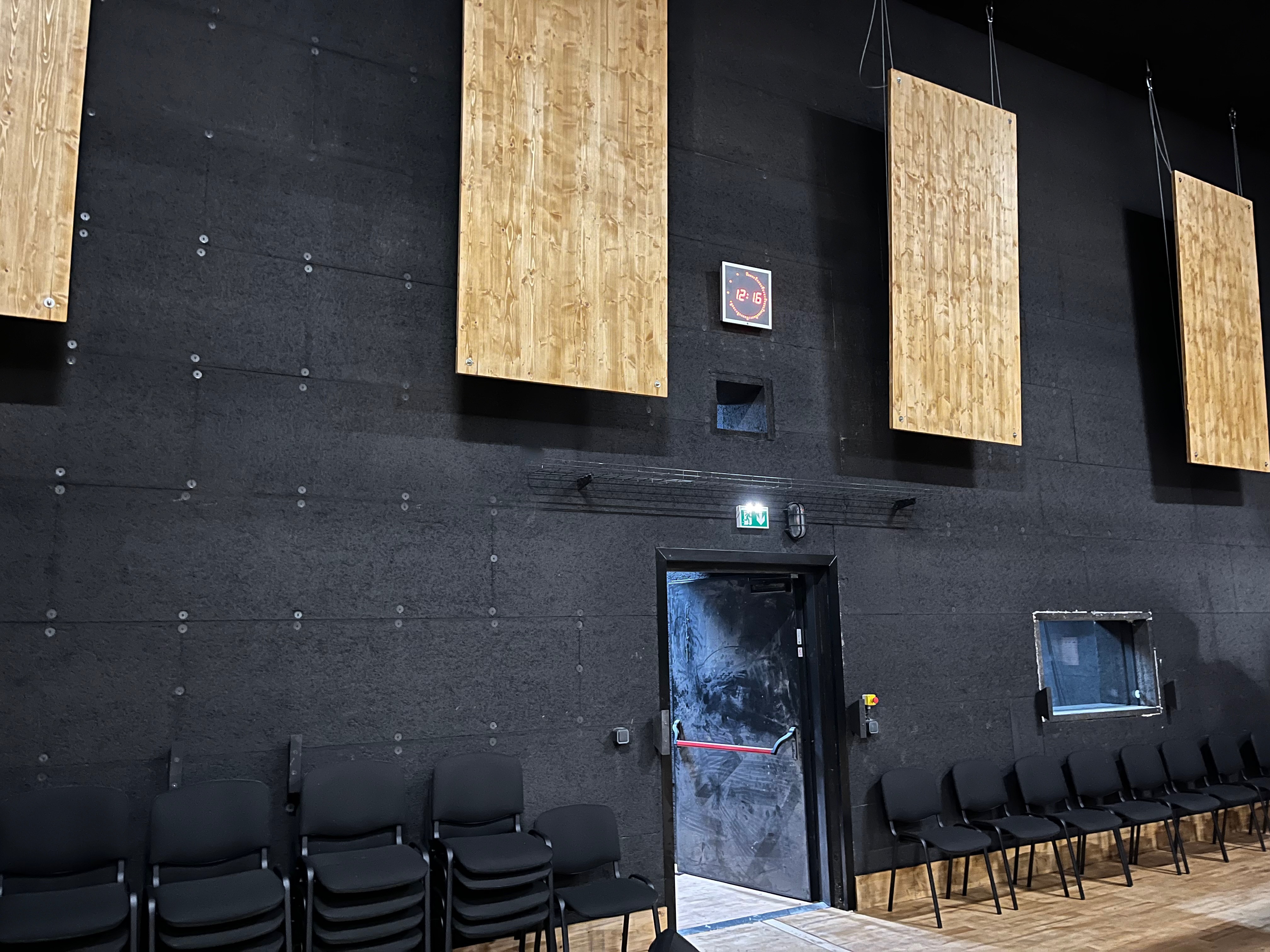 Le plateau sera équipé de 3 poutres métalliques en treillis triangulaire de 30 cm de côté et de 12 mètres de long, afin de suspendre le grill de projecteurs, les gradateurs de lumière et divers accessoires nécessaires aux installations du plateau pour l’enregistrement sonore ou le tournage d’images. Les longues poutres métalliques seront suspendues par des treuils électriques (charge maximale de 800 kg par treuil).