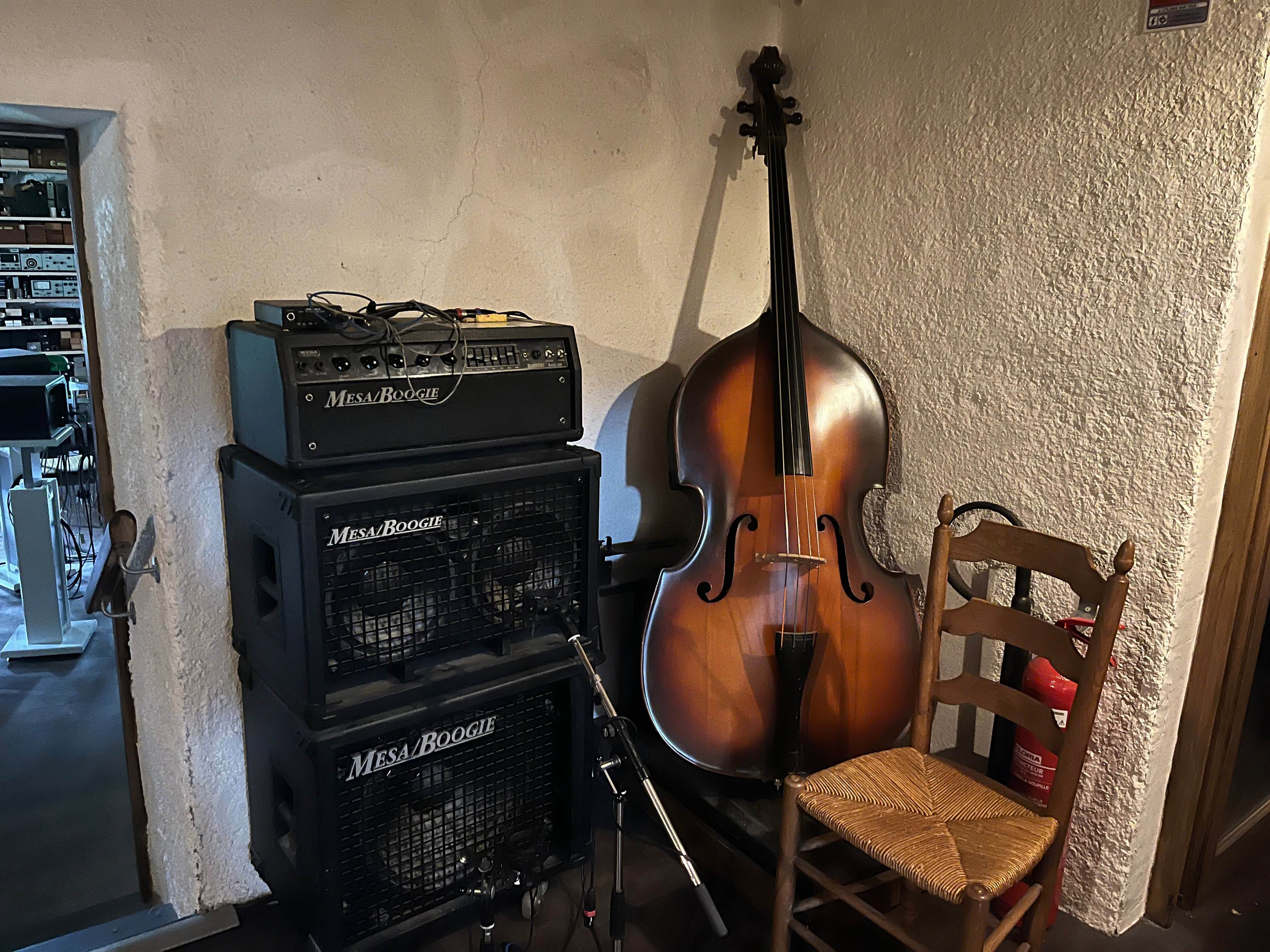 Cabine de prise de son, contrebasse et ampli basse (Mesa Boogie Base 200, deux HP de 10 pouces et un HP de 15 pouces). 23 octobre 2024